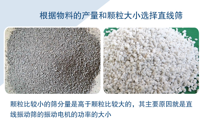 相同的直線振動篩同時篩分顆粒比較大于顆粒比較小的物料相比之下,顆粒比較小的篩分量是高于顆粒比較大的,其主要原因就是直線振動篩的振動電機的功率的大小,所以物料顆粒的大小就會影響到直線振動篩振動電機的功率問題。