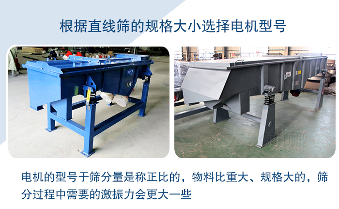 篩分產量需求和物料粒度等屬性參數是直線篩進行電機型號確定過程中主要的因素。所以說電機的型號于篩分量是稱正比的,如果物料還具有比重大、規格大的特點,則篩分過程中需要的激振力會更大一些,相應的對直線篩電機的功率要求也會增大;相反,如果直線篩待篩分物料是松散的小顆粒物料,則對電機的激振力需求會相對小一些。